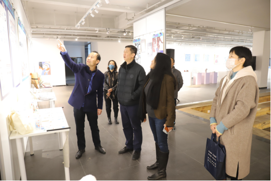 调研过程中,秦防修实地走访了学院设计艺术馆和艺苑留芳陈列馆,参观了学院正在展出的2020级MFA(艺术硕士)中期作品展。
