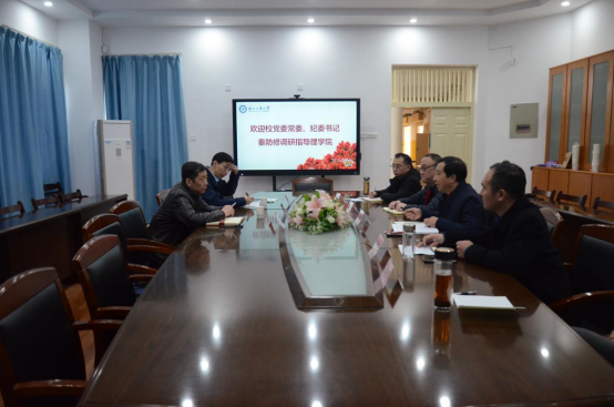 12月14日上午,校党委常委、纪委书记秦防修到理学院调研指导工作,纪委案件审理室主任刘军陪同调研。调研座谈会由理学院党委书记王地国主持,学院班子成员参加了会议。