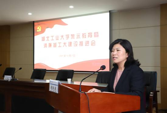 10月7日下午,篮球比分网_篮球比分直播-欧冠买球投注推荐警示教育暨清廉湖工大建设推进会在行政楼一楼会议室举行。全体在校校领导、各单位(部门)主要负责同志参加了会议。会议由校党委副书记、校长彭育园主持。