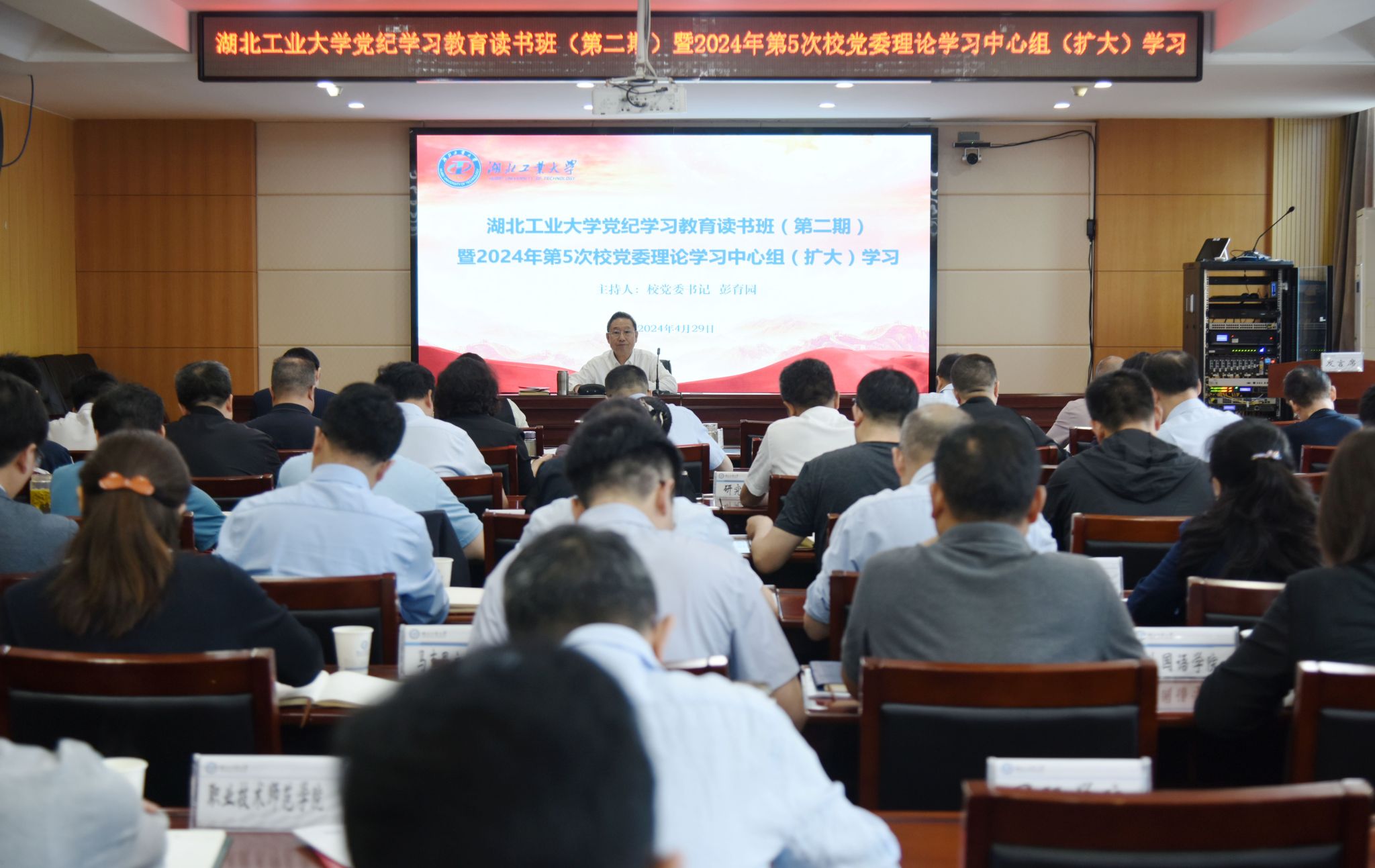 4月29日,篮球比分网_篮球比分直播-欧冠买球投注推荐举行党纪学习教育读书班(第二期)暨2024年第5次校党委理论学习中心组(扩大)学习。校党委书记彭育园主持会议并讲话,在家校领导、党委常委出席会议。校党委理论中心组成员、全体正处级领导干部参加学习。