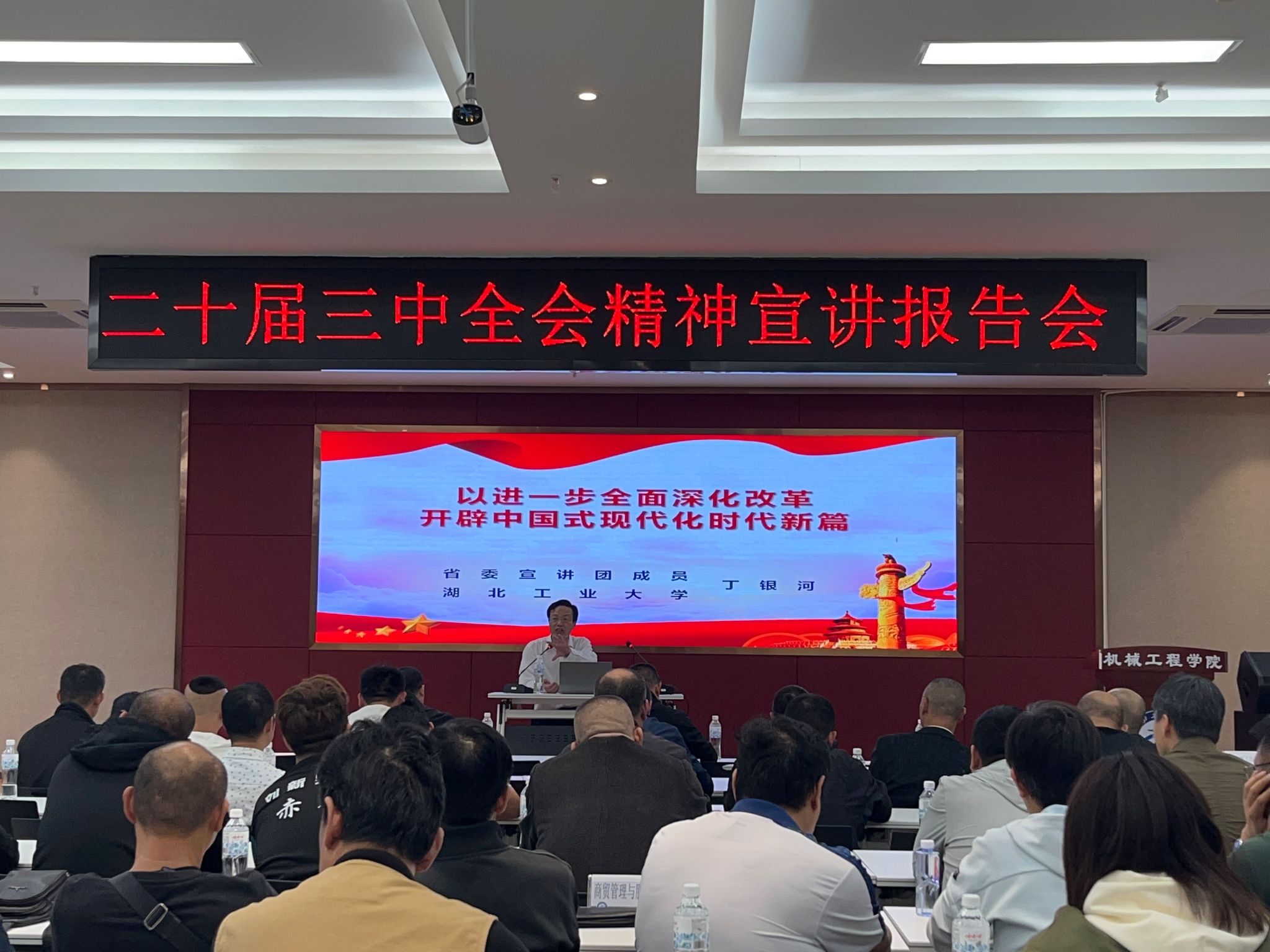 丁银河以《以进一步全面深化改革开辟中国式现代化时代新篇》为主题,围绕进一步全面深化改革、推进中国式现代化的重大意义和总体要求、全面准确理解《决定》提出的进一步全面深化改革重大举措、提高党对进一步全面深化改革、推进中国式现代化的领导水平和以钉钉子精神抓好改革落实等四个方面对党的二十届三中全会精神作了系统宣讲和深入阐释。他在宣讲中表示,学习好贯彻好党的二十届三中全会精神,是当前和今后一个时期全党全国的一项重大政治任务。只要全党以钉钉子精神抓好进一步全面深化改革各项任务的落实,以中国式现代化全面推进强国建设、民族复兴伟业就一定能够不断迈出坚实的步伐。