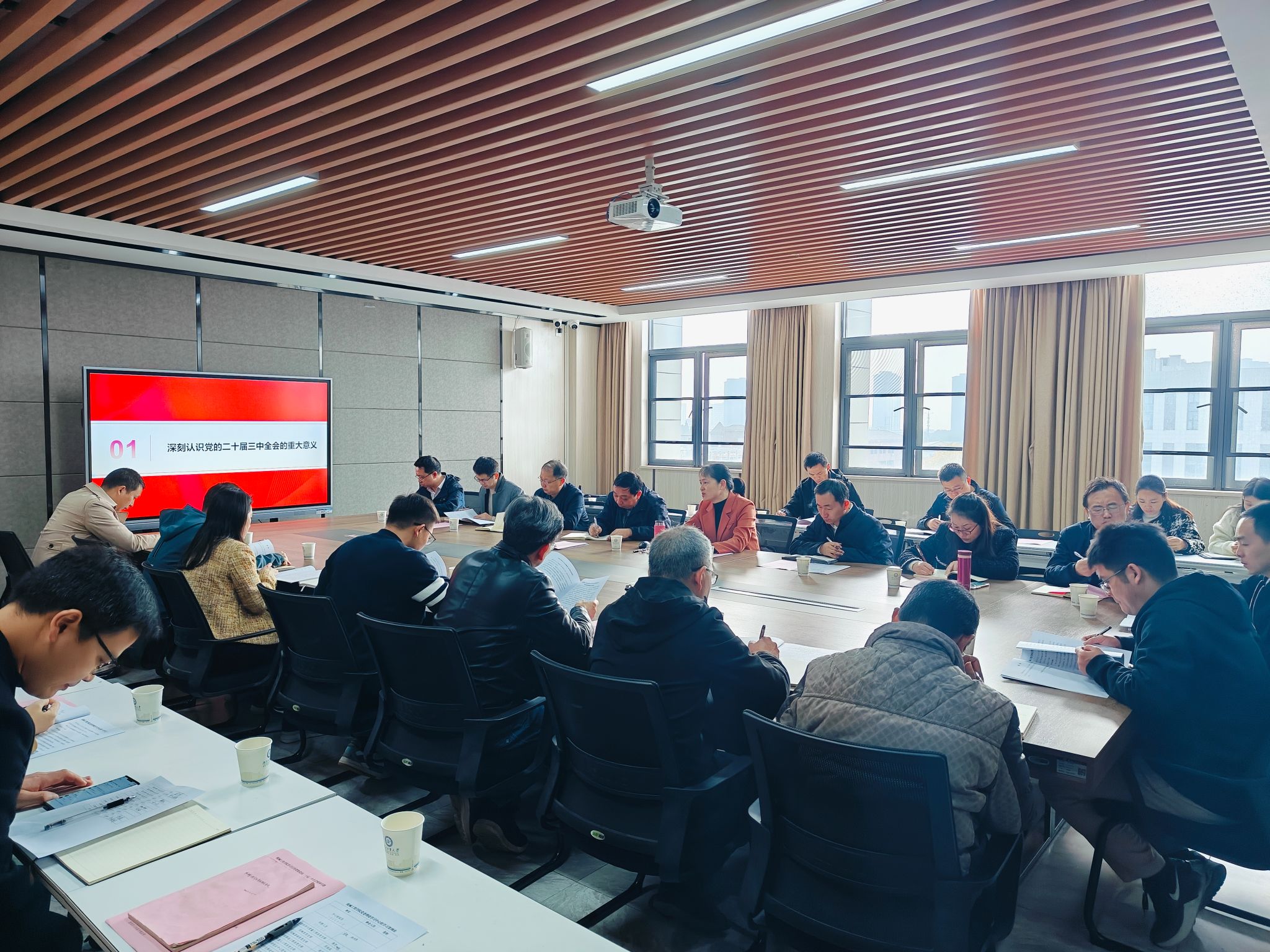 最后,王雷对学院党委学习贯彻党的二十届三中全会精神宣讲工作进行安排布置。他强调,学习宣传贯彻全会精神是当前和今后一个时期的重要政治任务,要在全院范围内兴起学习宣传贯彻全会精神的热潮,领导班子要带头示范开展宣讲工作,支部书记要带领师生深入学习领会全会精神,要把全会精神同学院改革发展结合起来,推动全会精神在学院落实落细。
