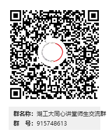 加入“湖工大同心讲堂师生交流群”QQ群号:915748613,申请备注“单位+身份(教师OR学生)+姓名”,进群后及时按“单位+身份(教师OR学生)+姓名”格式更名)。